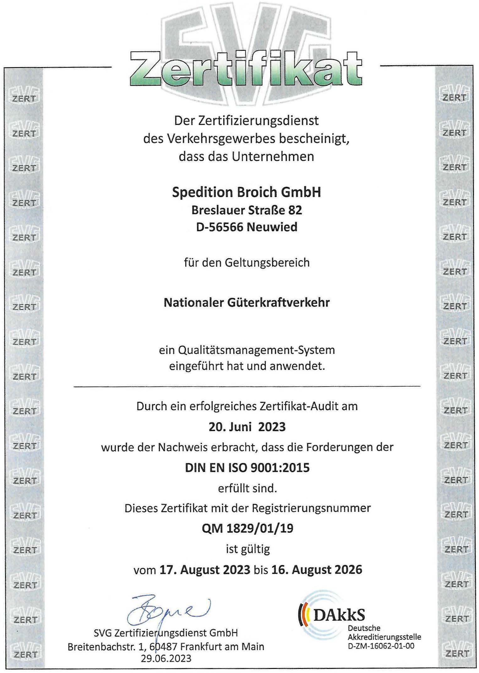 Die Firma wurde im Jahr 1959 von Herrn Josef Broich als "Spedition Josef Broich" gegründet (Lagerung von Baustoffen, bahnamtl. Rollfuhrunternehmer). Im Jahr 1980 erfolgte die Umwandlung in GmbH. Seit 01.04.2011 fungiert Klaus-Werner Broich als alleiniger Geschäftsführer und führt erfolgreich unser Speditionsunternehmen. Die Firma beschäftigt zur Zeit 15 Personen.